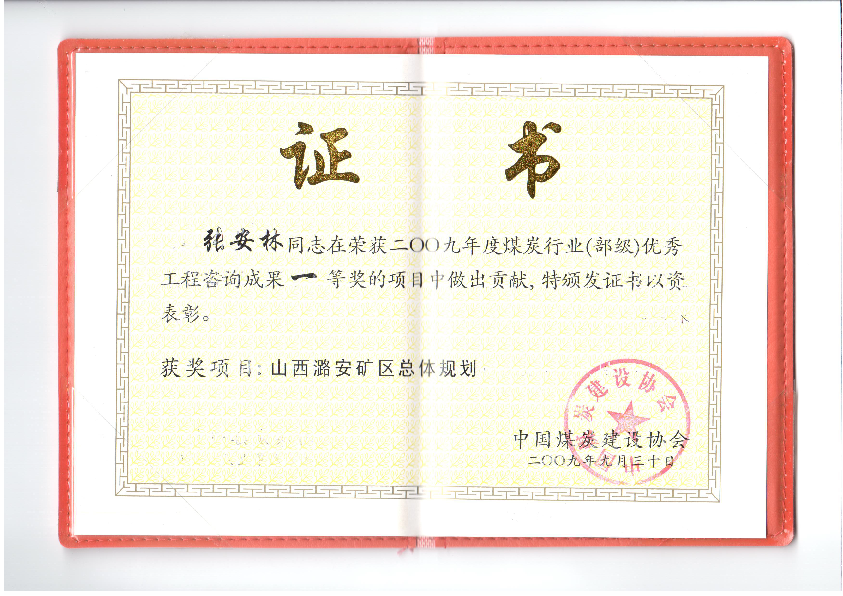 主持设计的《山西潞安矿区总体规划》、《陕北煤炭基地规划》、《新疆大型煤炭基地规划》等8个项目先后获得煤炭行业优秀工程咨询成果特等、一等、二等、三等奖及国家优秀咨询一等奖。参与设计的活鸡兔、凤凰山和姚桥矿井先后获得国家设计金、银奖。