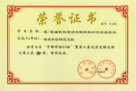 2 | 煤/焦油制取清洁液体燃料和化学品技术 | 第六届北京发明创新大赛协会/北京市职工技术协会奖 | 金奖 | 2012 |