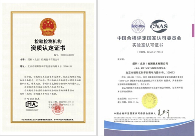 近日,煤科院煤科检测公司获得了国家认证认可监督管理委员会(CMA)颁发的检验检测机构资质认定证书和中国合格评定国家认可委员会(CNAS)颁发的实验室认可证书,标志着煤科院新成立的煤科检测公司质量管理体系水平和检测技术能力达到了国家和国际认可水平,为开展矿山设备检测、高端产品自愿性认证检验、电磁兼容EMC国际互认测试及军工产品检测等业务迈出了关键步伐。