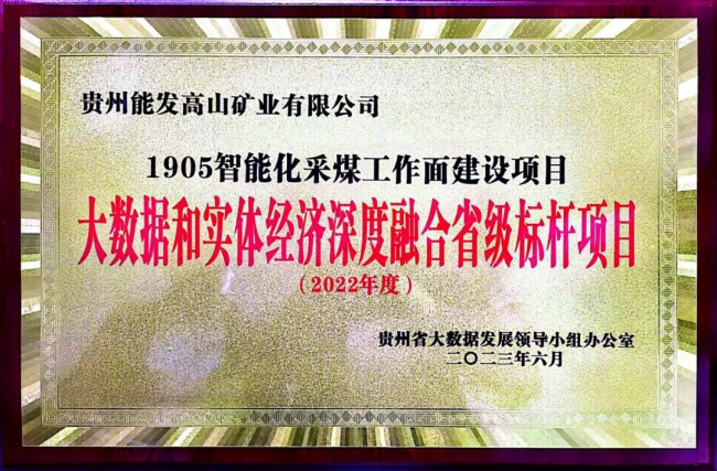 近日,上海煤科承担的高山煤矿“1905智能采煤工作面建设”项目被贵州省大数据发展领导小组办公室评为2022年度“大数据和实体经济深度融合省级标杆项目”,这是对上海煤科智慧矿山技术和产品的充分肯定。
