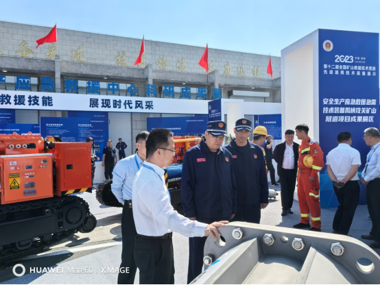 展会期间,国家安全生产应急救援中心领导亲临展位,听取参展设备介绍,并给予高度评价。科工国际主导研发的应急救援永磁电潜泵产品,采用单级离心泵电机一体化设计,创新三重轴密封专利技术,可实现立式、卧式、倾斜360°使用,排量大、重量轻,投入前免注水,适应全潜、半潜、裸露多种工况,可串联使用满足更大流量和扬程要求;另一款产品,矿山应急救援液驱PCS680排水车产品,整车采用防爆设计,集成了摄像头及多种传感器,具有就地控制和遥控功能,产品分母车和子车两部分,可整机移动,也可子车单独移动,子车可离开母车50米进行潜水抽排作业,不会发生触电的危险。两台设备均适用于矿山巷道、隧道等特殊工况的快速排水救援。