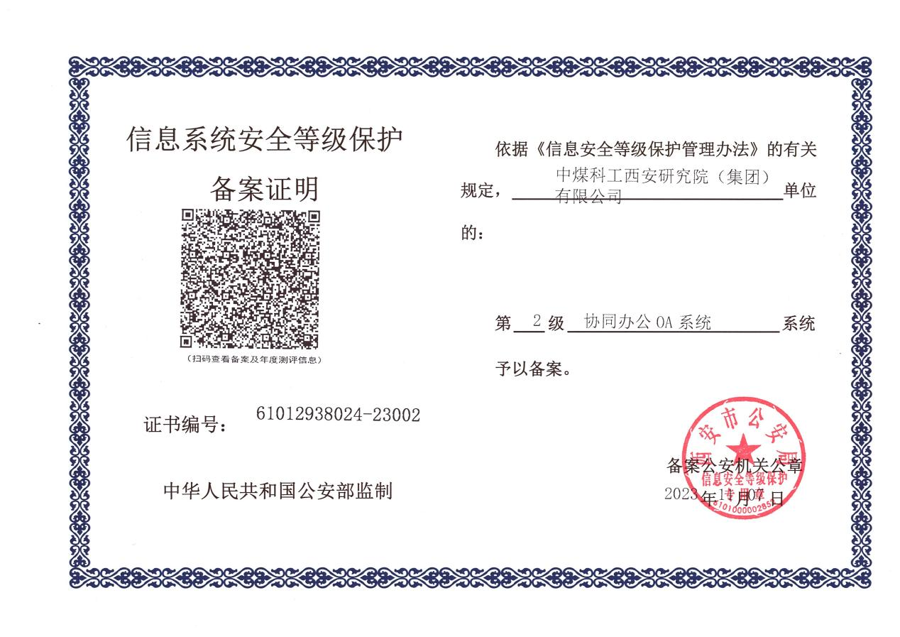 西安研究院4个系统顺利通过“国家信息系统安全等级保护二级认证”